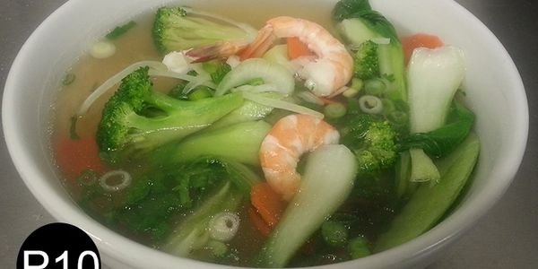 Cantonese Soup, Chicken Chow Mein, Fried Jumbo Shrimp (4), Ham Fried Rice,